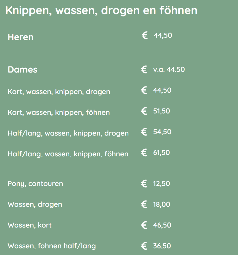 - Kort, wassen, knippen, föhnen